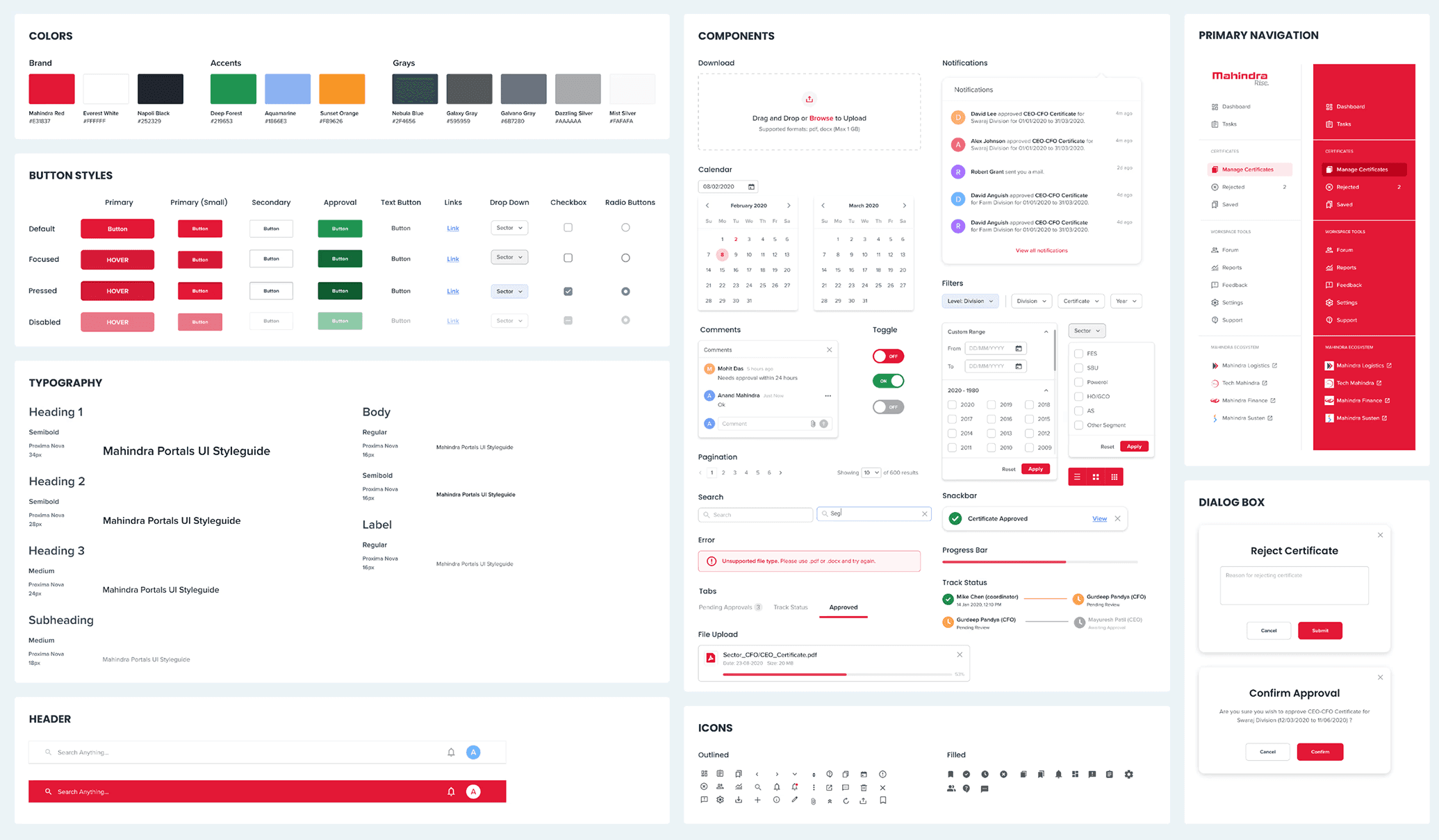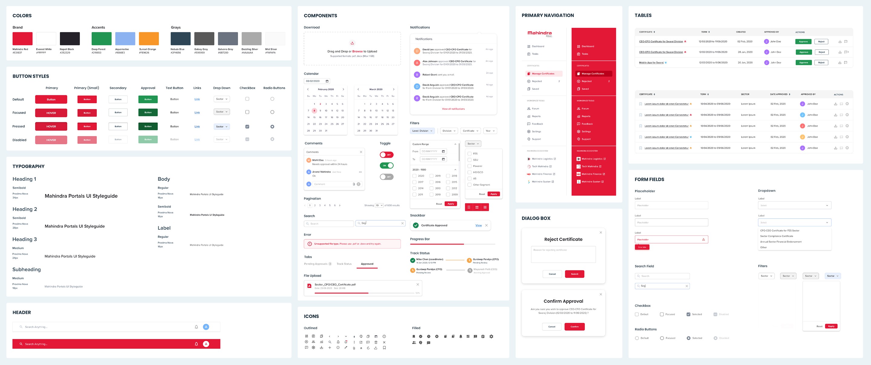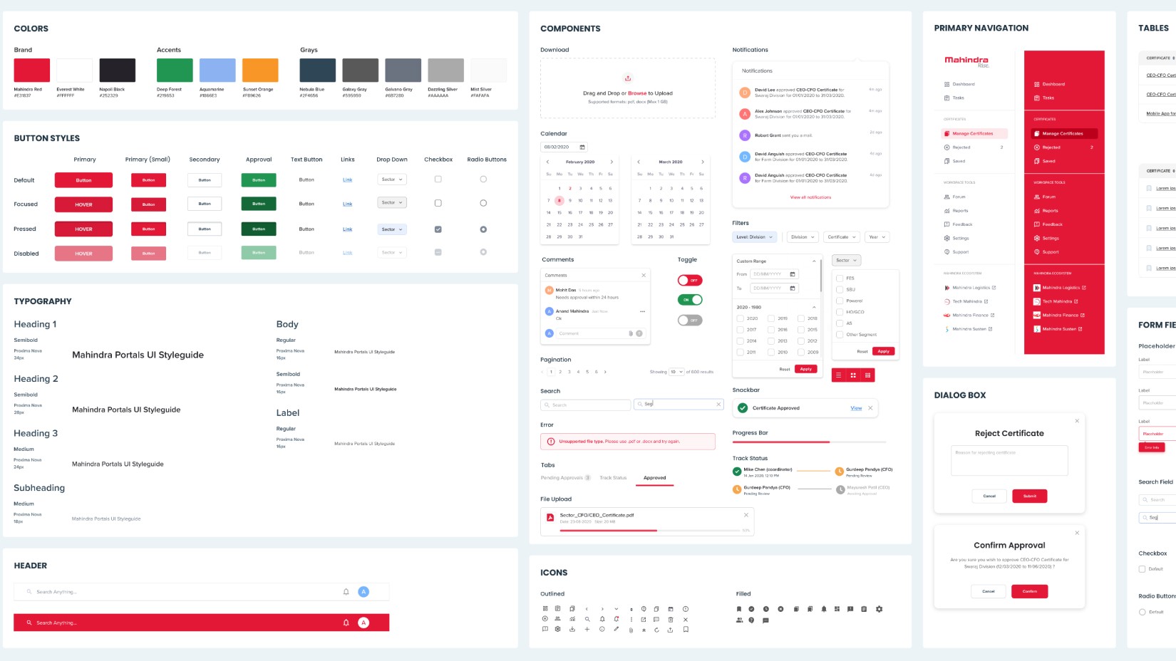 A new design system with cohesive layouts, standardized components, and refined visuals, which brings clarity, consistency, and modernity to the Mahindra portal.