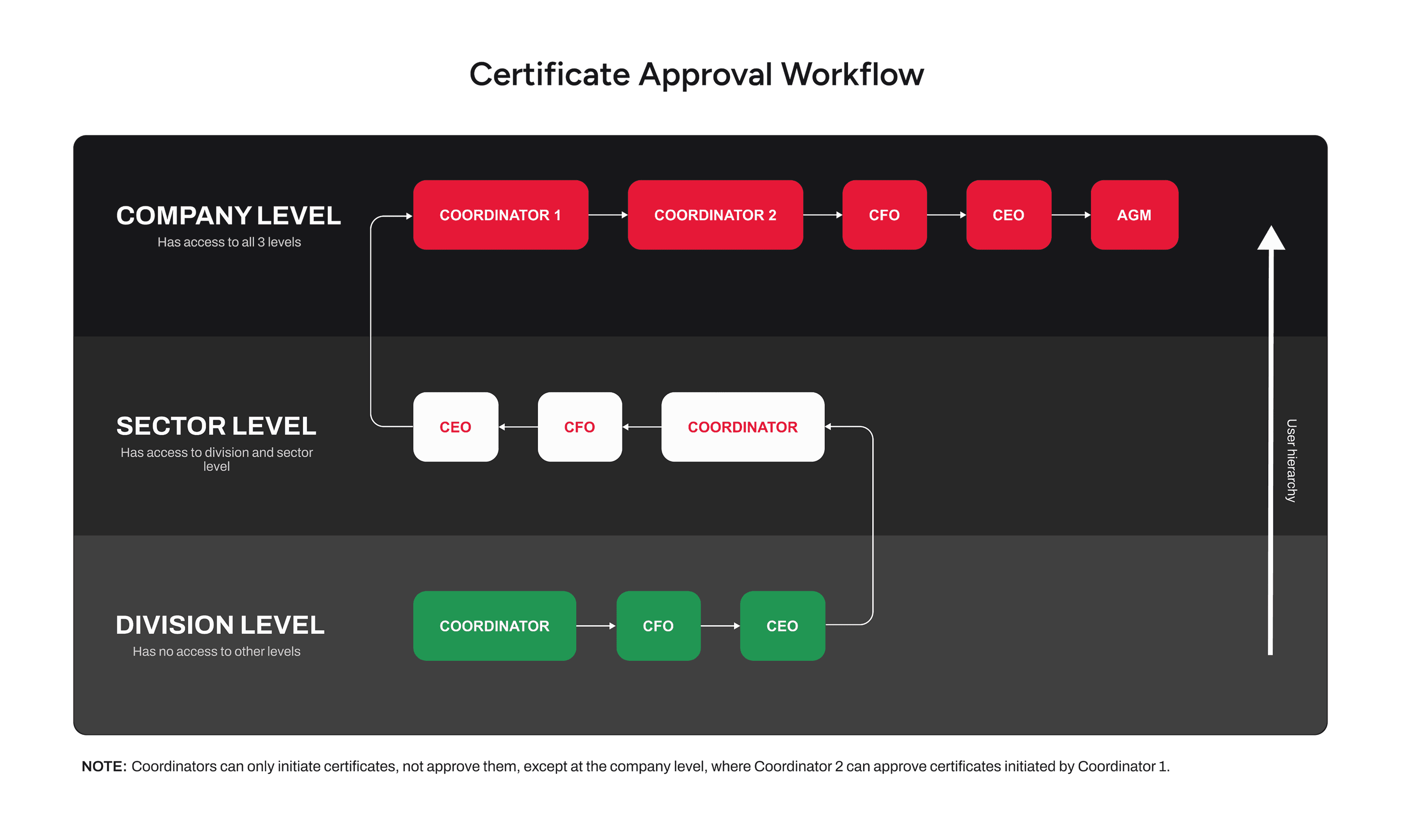 Stakeholders wanted a unified system that made certificate approvals smoother and easier for everyone, regardless of role or hierarchy.